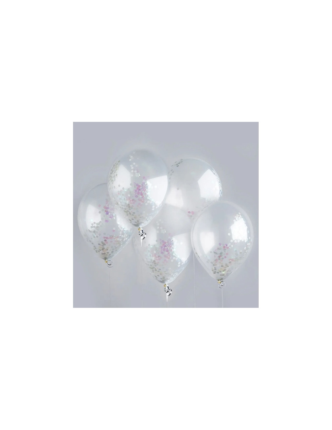 Packung mit 5 durchsichtigen Latexballons, 30 cm, gefüllt mit irisierendem Konfetti