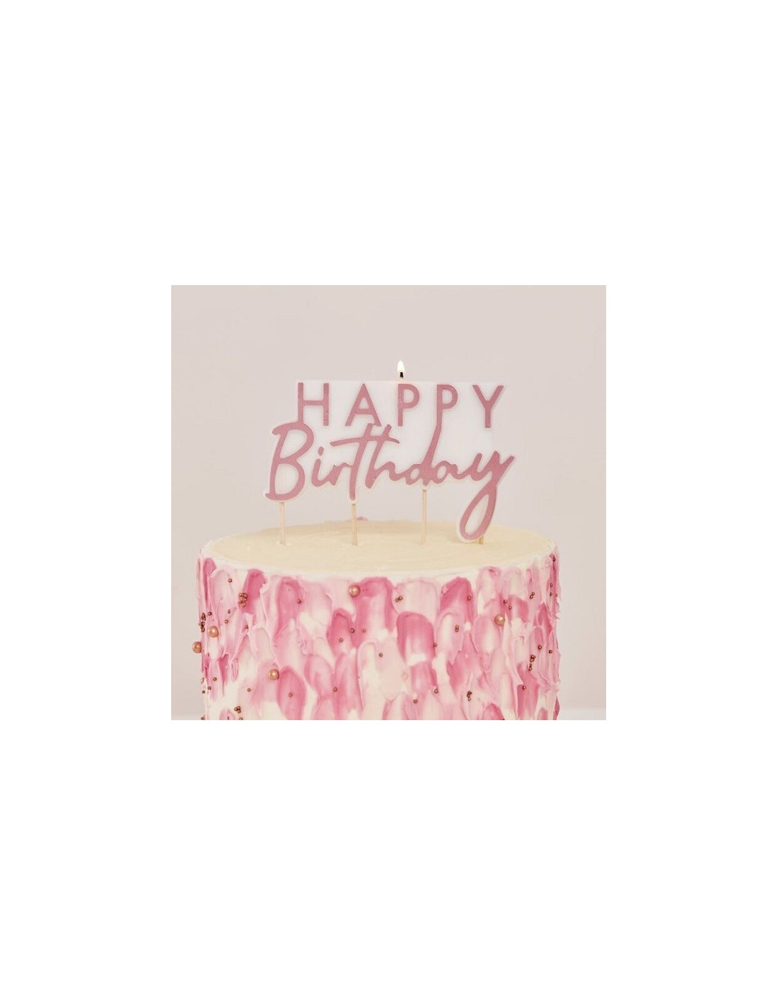 Diese wunderschöne Tortenkerze mit roségoldener Schrift ist perfekt zum Dekorieren und Beleuchten Ihrer Geburtstagstorte!