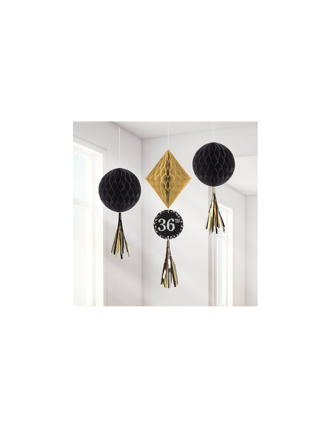 Schwarze und goldene Hängedekorationen „Happy Birthday“