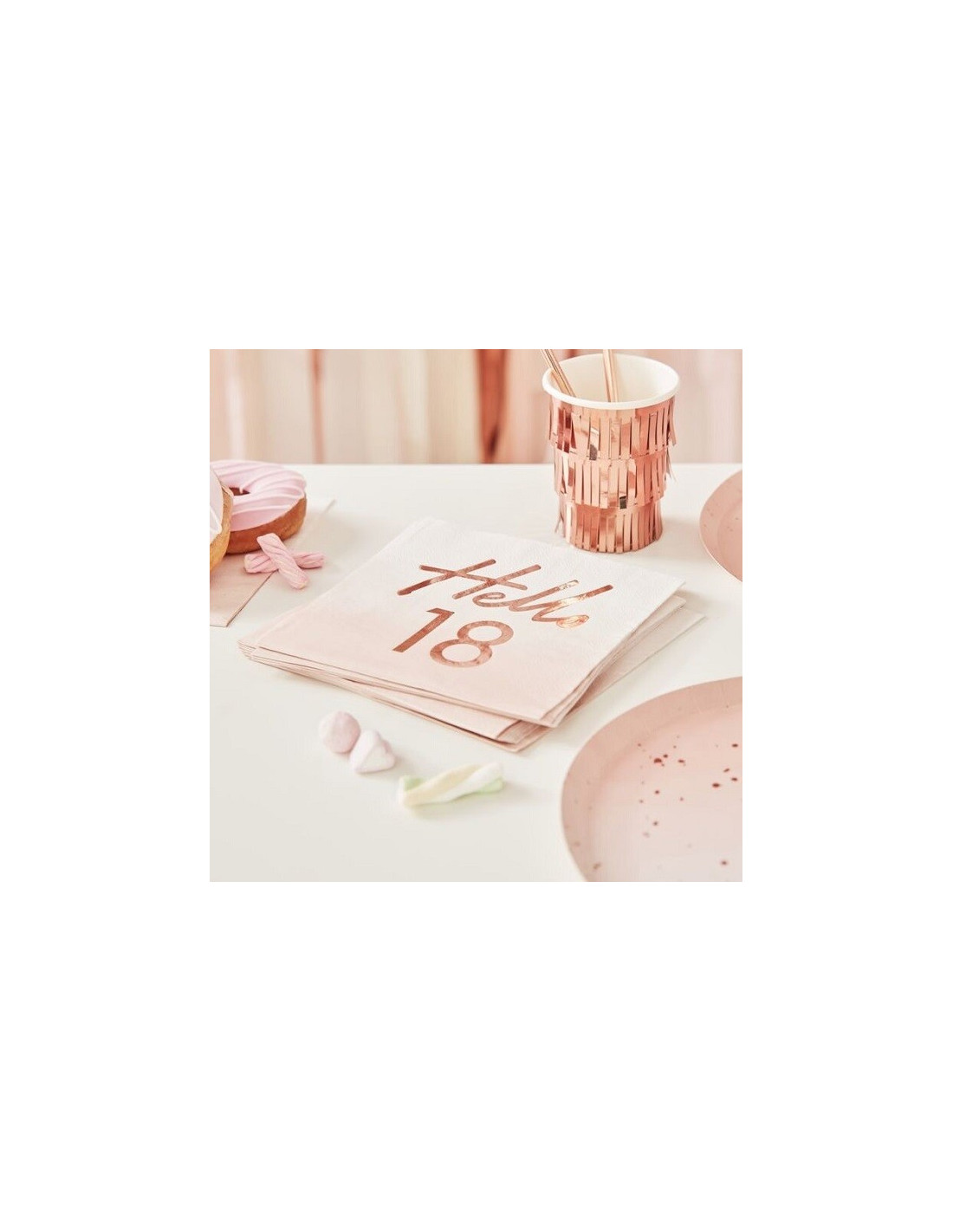 Geburtstagsservietten "Hallo 18 Jahre" in Roségold - Partyartikel - Bellefete.ch