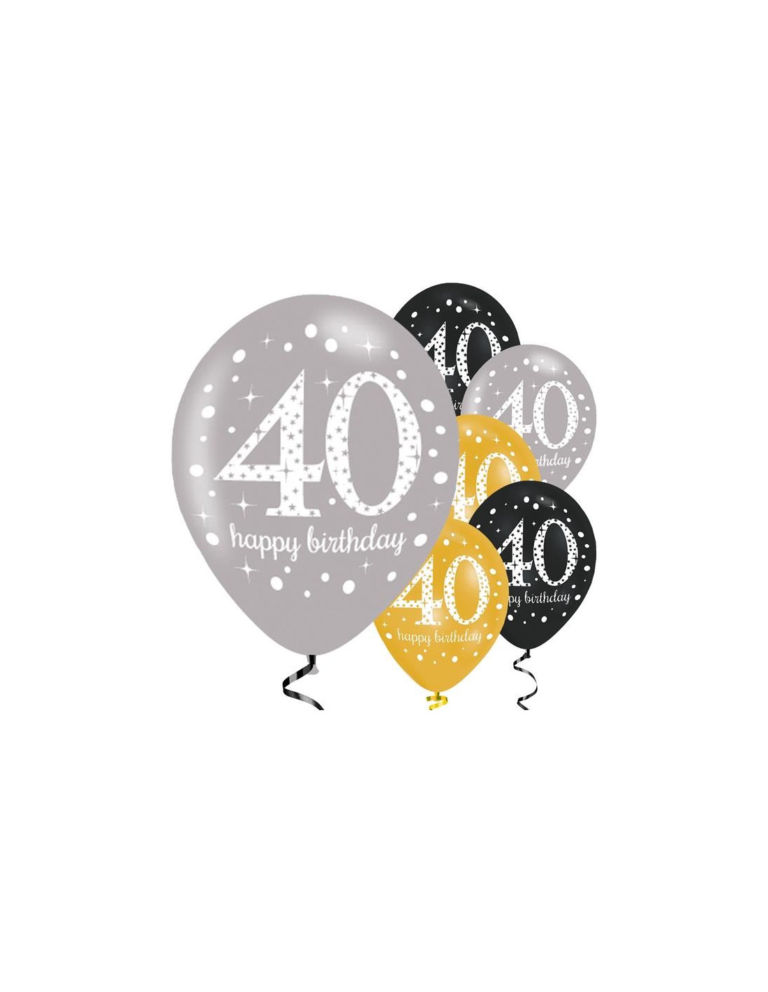 6 Luftballons mit der Aufschrift „Happy Birthday“ zum 40. Geburtstag