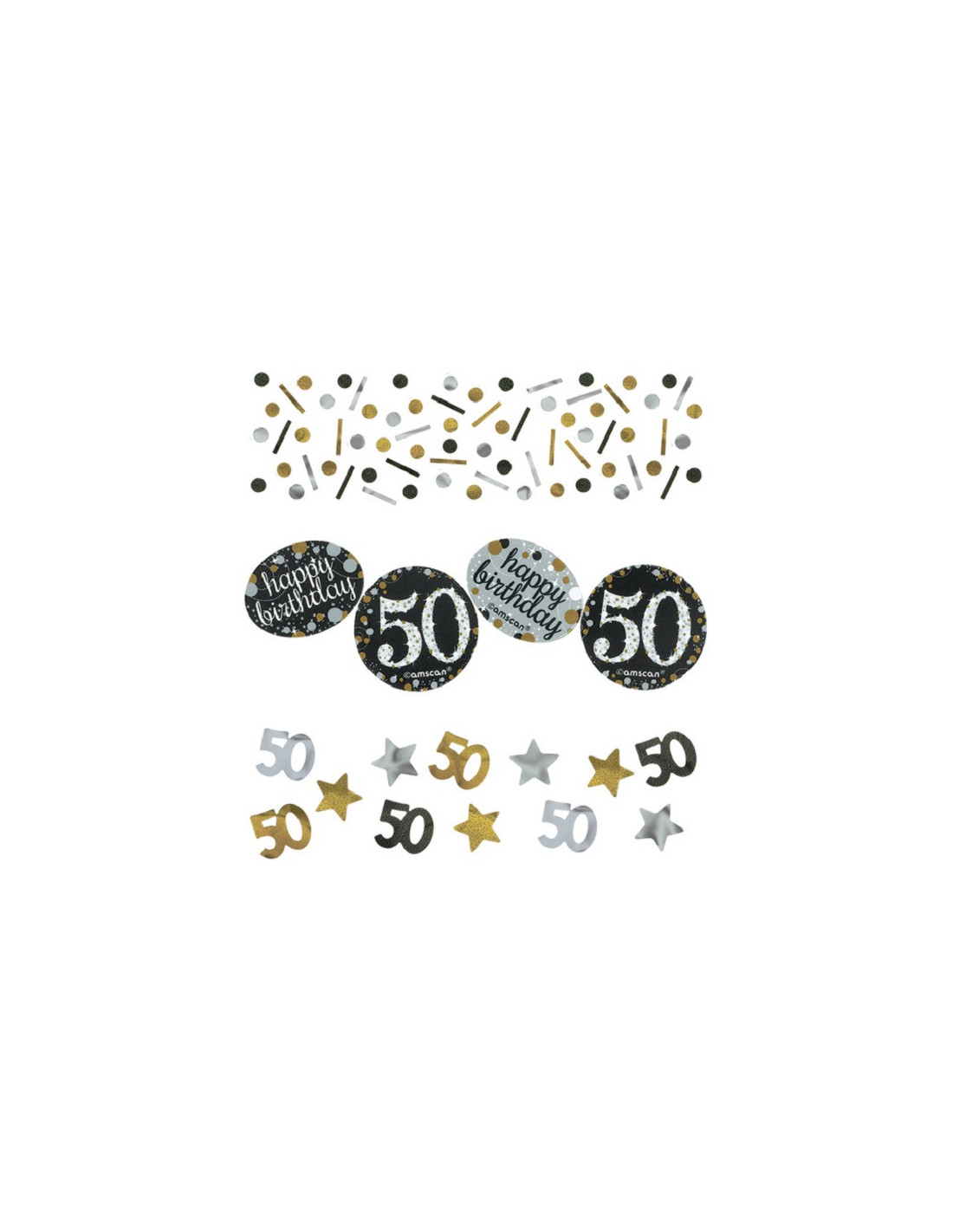 Feiern Sie Ihren 50. Geburtstag mit diesem „Happy Birthday“-Konfetti für eine funkelnde Feier. Dieses hübsche Konfetti besteht aus schwarzen und silbernen Kartonstücken mit dem Schriftzug „Happy Birthday“, goldenen und silbernen Sternen, der Zahl „50“ und kleinen silbernen Punkten. Es eignet sich auch hervorragend als Ergänzung für Karten und Einladungen im Umschlag.