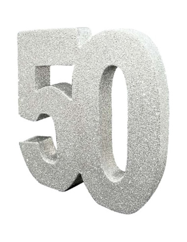 Feiern Sie Ihren 50. Geburtstag mit dieser silbernen Glitzer-Tischdekoration für eine glamouröse Feier. Diese funkelnde silberne Glitzer-Tischdekoration kann überall dort platziert werden, wo Sie einen Hauch von Glanz hinzufügen möchten.