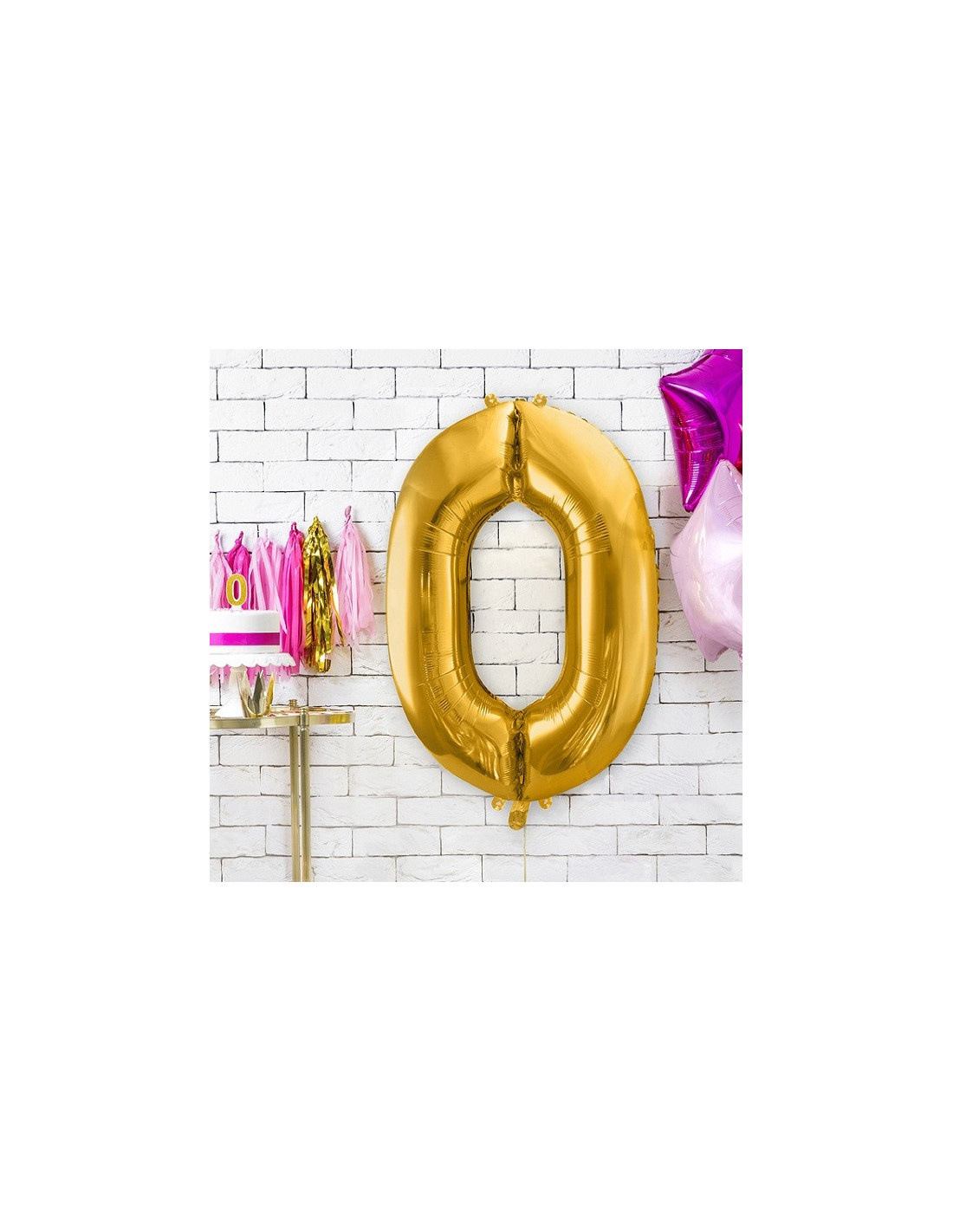 Goldener Aluminiumballon mit der Zahl „0“, 86 cm hoch