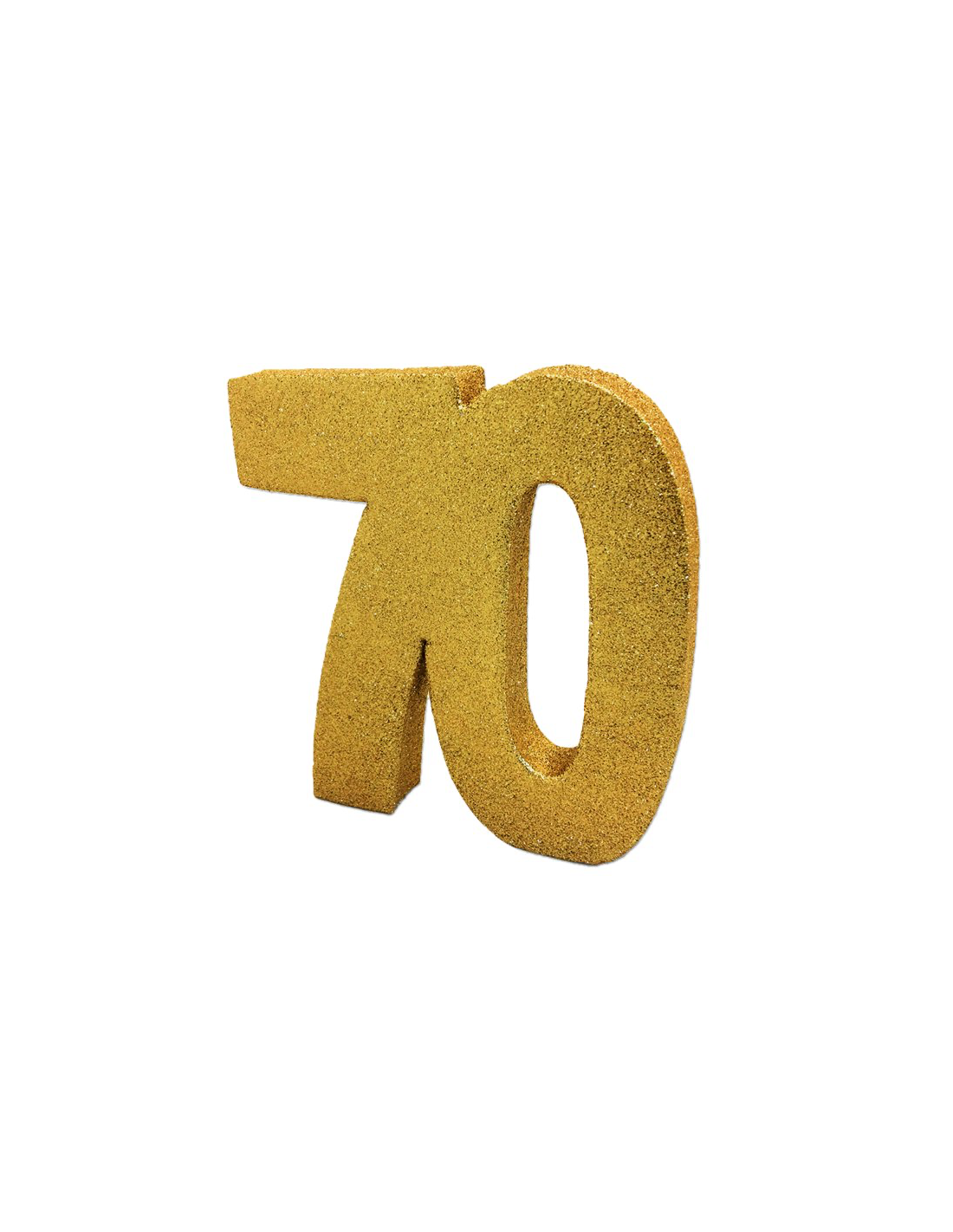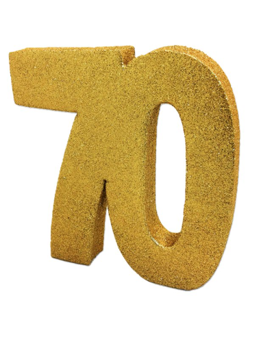 Feiern Sie Ihren 70. Geburtstag mit dieser goldenen Glitzer-Tischdekoration für eine glamouröse Feier. Diese funkelnde goldene Glitzer-Tischdekoration kann überall dort platziert werden, wo Sie einen Hauch von Glanz hinzufügen möchten.