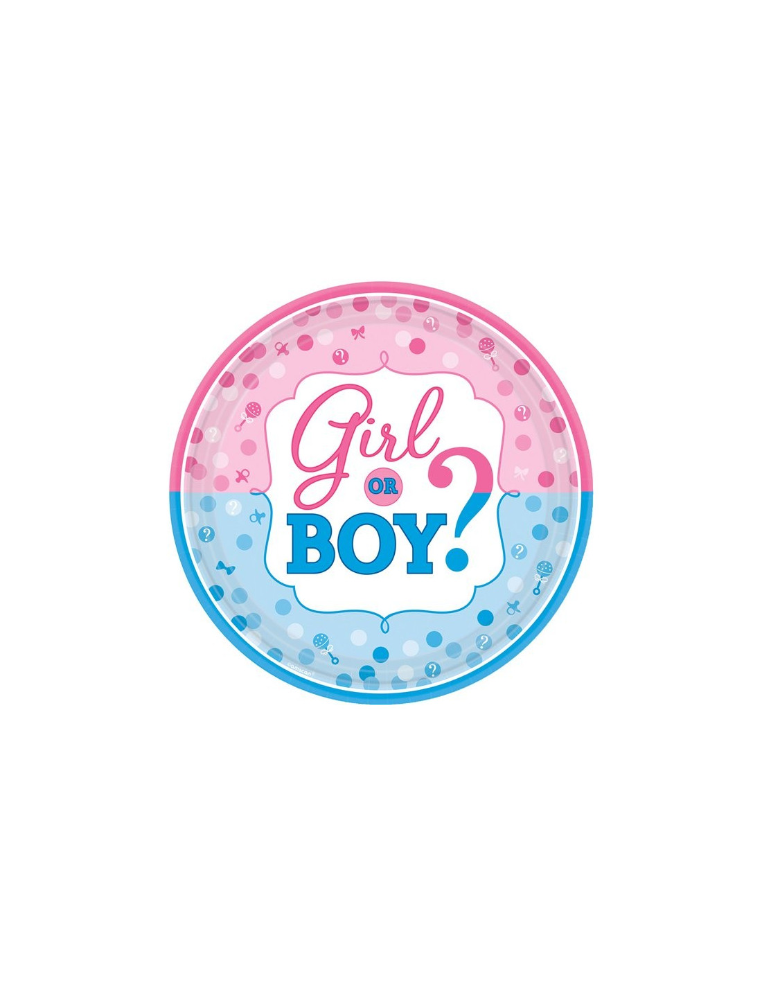 Diese großen Pappteller sind halb rosa und halb blau. Sie eignen sich perfekt, um Familie und Freunde das Geschlecht Ihres Babys erraten zu lassen. Ihre Babyparty oder geschlechtsneutrale Feier wird so bis zur großen Verkündung voller Spannung sein.