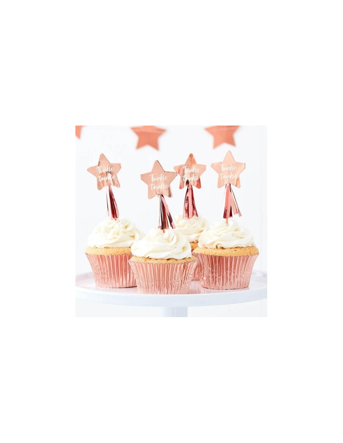 Cupcake-Picker mit Sternenmotiv für die Babyparty – Roségold