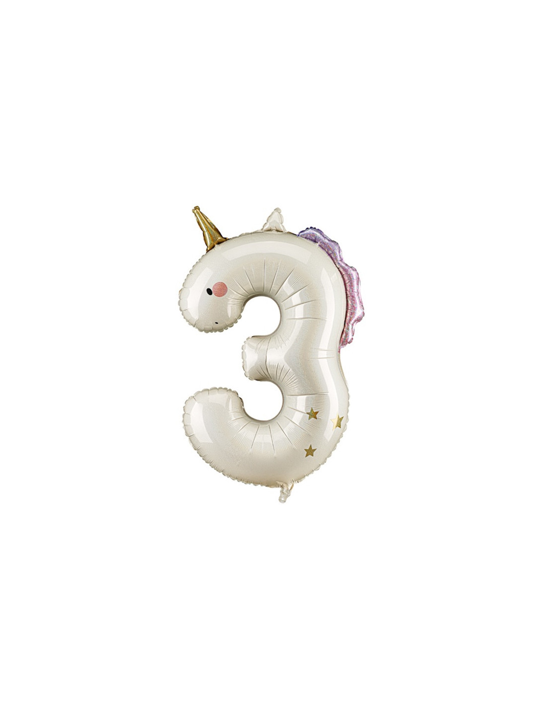 Verleihen Sie der Party mit diesem Einhorn-Partyballon in Form der Zahl „3“ einen Hauch von Magie – perfekt, um einen Kindergeburtstag in einer Märchenwelt zu feiern. Sein weiches und farbenfrohes Design wird kleine Einhorn-Fans begeistern und für eine fröhliche Atmosphäre sorgen.