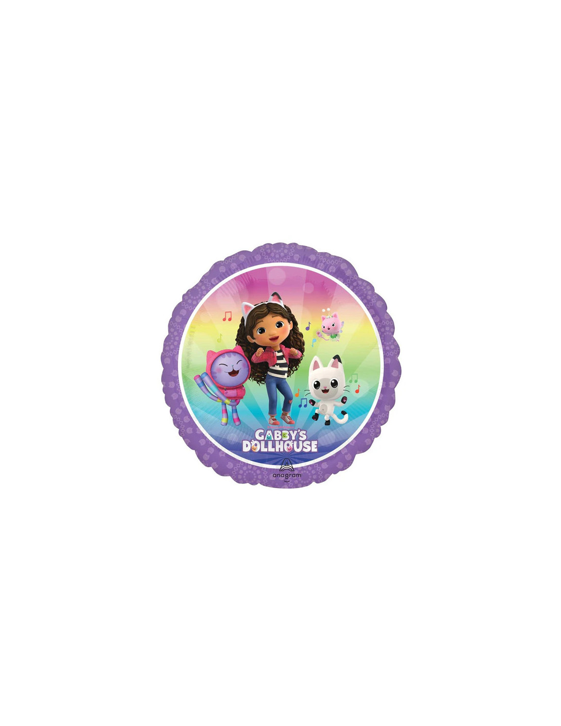 Verleihen Sie Ihrer Einrichtung mit diesem Gabby's Dollhouse-Folienballon eine magische Note. Er zeigt Gabby und ihre süßen Katzenfreunde vor einem bunten Regenbogenhintergrund, umgeben von einem glitzernden lila Rand, der garantiert alle Blicke auf sich zieht.