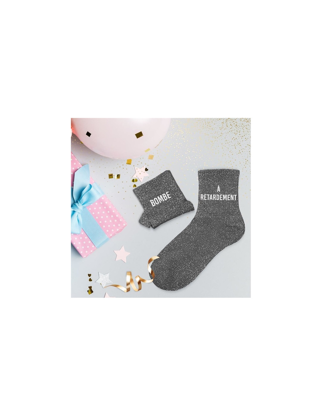 Zeigen Sie Ihre zwei Seiten mit diesem Duo grauer Paillettensocken „TIME BOMB“ – eine perfekte Mischung aus Humor, Stil und Glitzer. Ein verspieltes und originelles Paar, ideal, um mit Kontrasten zu spielen.