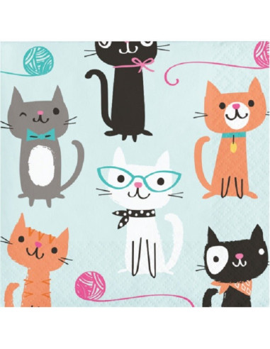 Diese kleinen Papierservietten zeigen mehrere Kätzchen auf hellblauem Hintergrund. Sie sind eine tolle Themenwahl für eine Geburtstagsfeier, Babyparty oder jeden anderen Anlass mit Katzenthema!