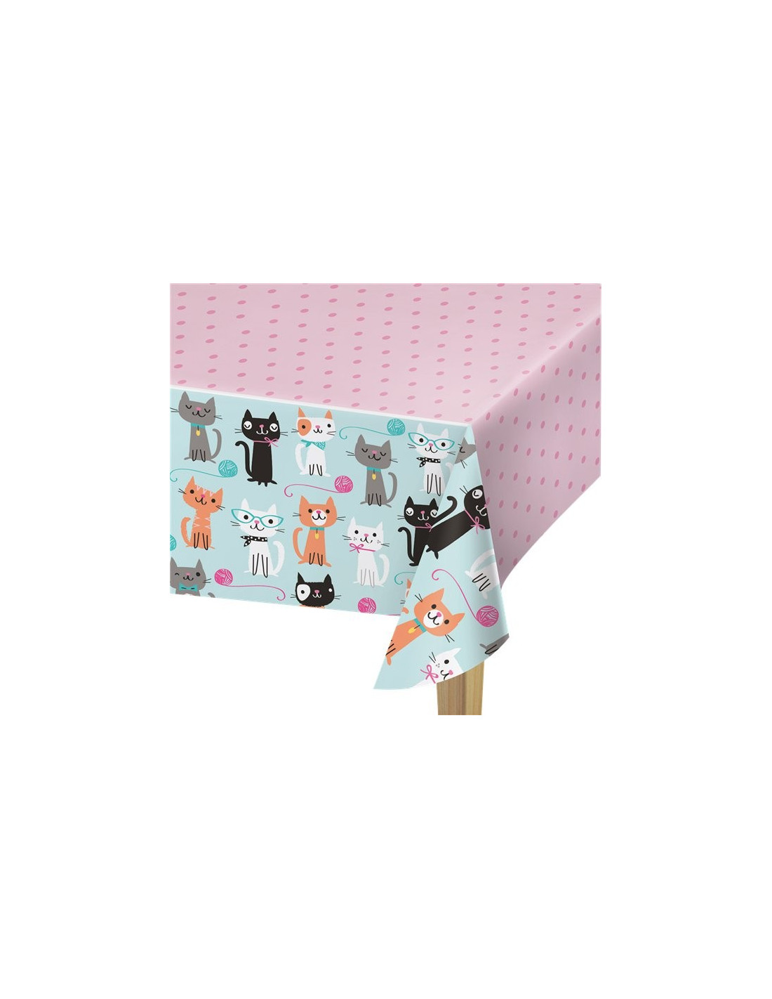 Diese farbenfrohe Plastiktischdecke hat in der Mitte ein rosa gepunktetes Feld und einen Rand mit vielen niedlichen Kätzchen. Sie eignet sich hervorragend als Tischdecke für Geburtstagsfeiern, Babypartys oder andere Anlässe rund um Katzen!