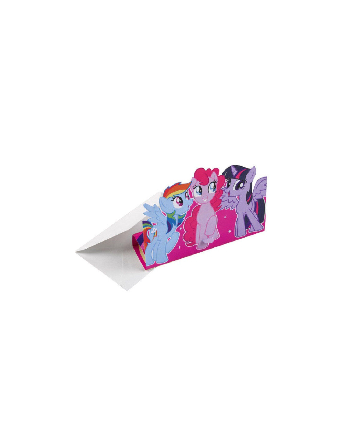 Auf diesen Einladungskarten sind süße kleine Ponys abgebildet – Rainbow Dash, Twilight Sparkle und Pinkie Pie. Sie können nützliche Informationen zu Ihrer Geburtstagsfeier (Datum, Ort, Adresse) aufschreiben. Sie eignen sich perfekt, um die Freunde Ihrer Tochter zu ihrer My Little Pony-Geburtstagsparty einzuladen.