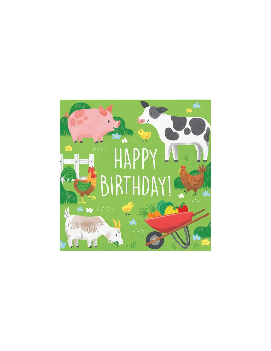 Verwenden Sie diese hübschen Papierservietten auf Ihrer Party mit dem Motto „Bauernhoftiere“. Sie sind umweltfreundlich, wunderschön illustriert und werden Ihre Gäste begeistern. Kombinieren Sie die Servietten mit unserer Partykollektion „Bauernhoftiere“ – perfekt für Kinder, die alles rund ums Landleben lieben! Die Kollektion besticht durch farbenfrohe Drucke mit niedlichen Bauernhoftieren vor einem beeindruckenden Hintergrund.
