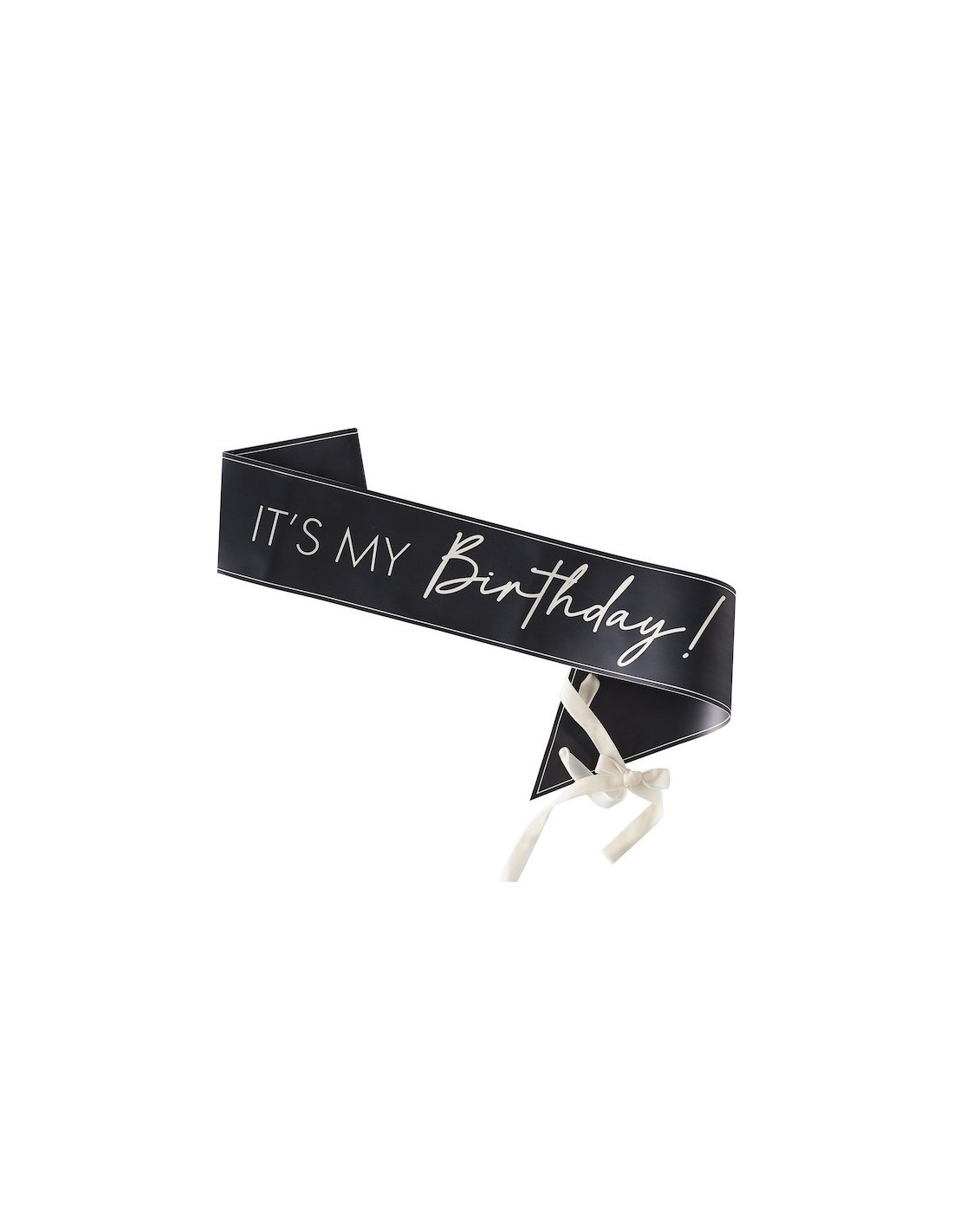 Zeig allen, dass du Geburtstag hast – mit dieser stylischen Geburtstagsschärpe in Nude und Schwarz. Einheitsgröße dank verstellbarem Bandverschluss!