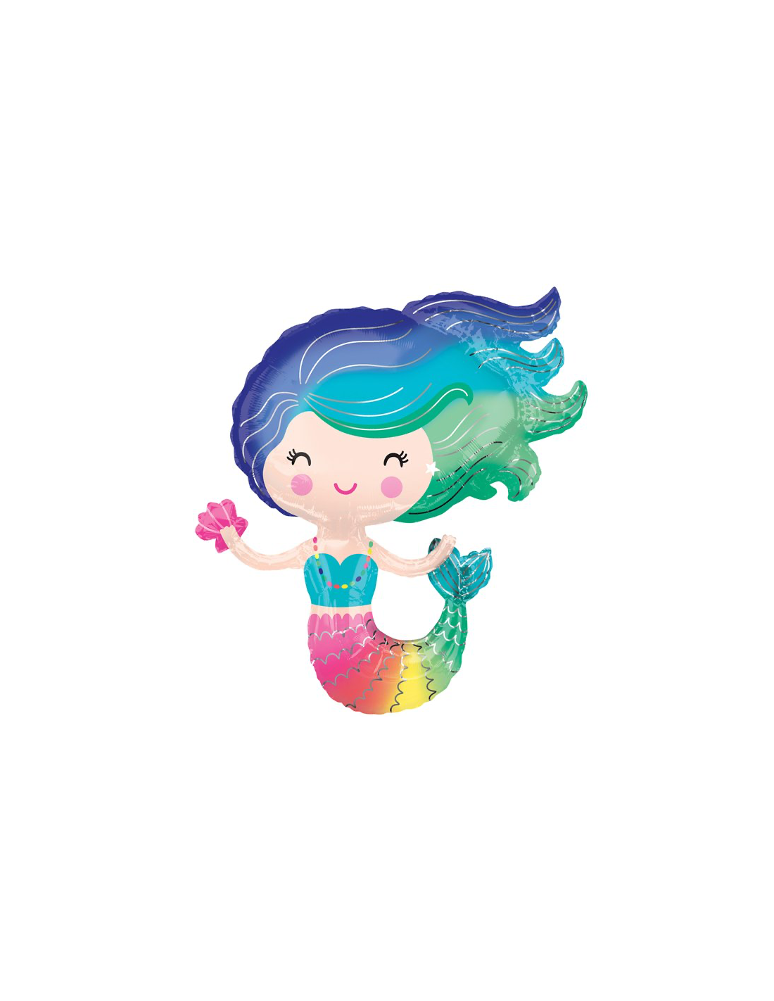 Verschönere deine Party mit dieser prächtigen, lächelnden, bunten Meerjungfrau. Dieser Ballon ist die perfekte Ergänzung für eine farbenfrohe Dekoration auf einer Geburtstagsfeier mit Meerjungfrauen-Motto.
