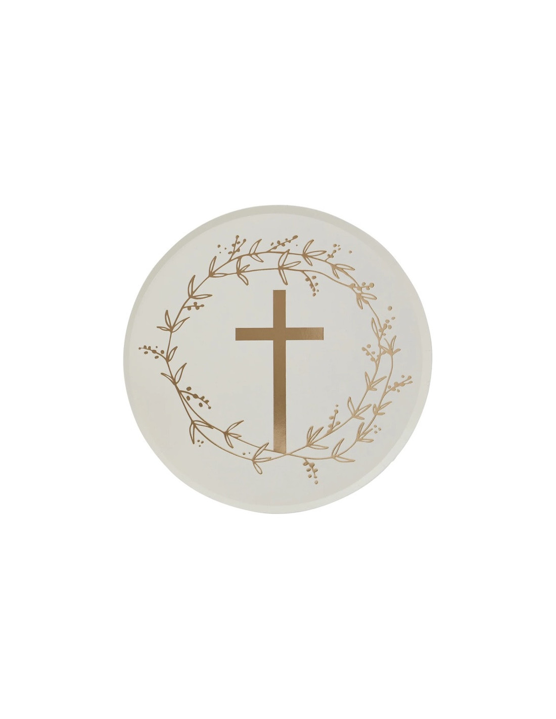 Diese wunderschönen weißen Pappteller mit goldenem Kreuz eignen sich perfekt, um Ihre Tischdekoration für eine Taufe oder Kommunion zu vervollständigen.