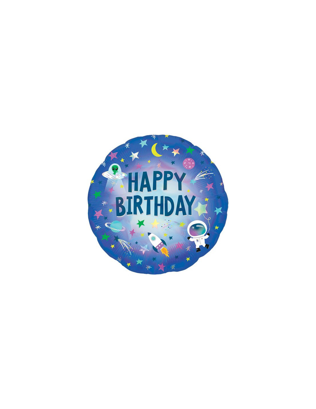 Dieser „Happy Birthday“-Luft- und Raumfahrtballon mit Abbildungen eines Astronauten, einer Rakete, Außerirdischer und Sterne eignet sich perfekt zur Dekoration Ihrer Party mit dem Thema Weltraum, Galaxie oder Astronaut.
