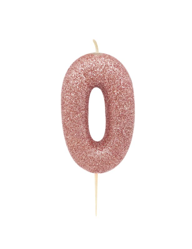 Roségoldene Glitzer-Geburtstagskerze mit der Zahl „0“