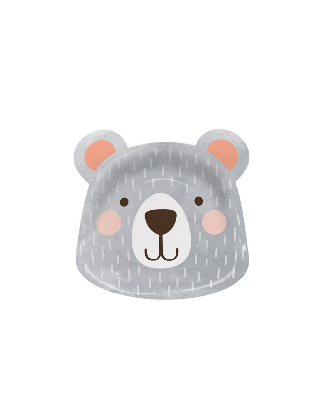 Ces assiettes seront idéales pour préparer l'anniversaire d'un petit garçon fan d'animaux mais aussi une baby shower originale. Elles sont en forme de tête d'ours gris avec un museau blanc et noir, des yeux noirs, des joues rosées et des oreilles dépassants des assiettes. Ces assiettes sont idéales pour un premier anniversaire ou une baby shower au thème Ourson.