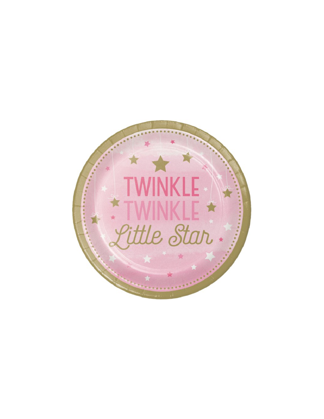 Organisez une première fête d'anniversaire spéciale avec ces magnifiques assiettes en papier rose et doré. Chacune a une bordure dorée et comporte les mots "Twinkle Twinkle Little Star".