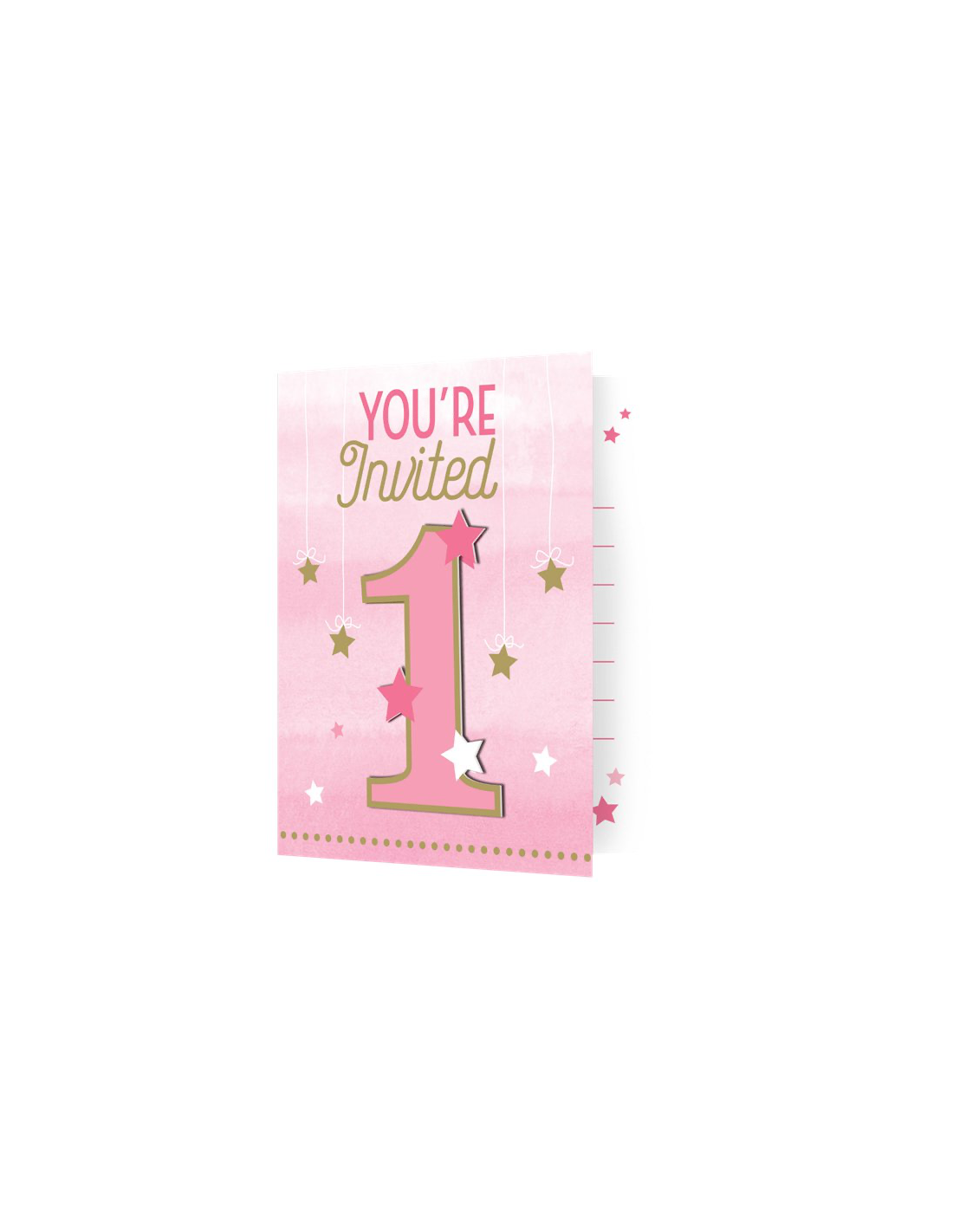 8 Invitations 1er anniversaire Petite Étoile Rose