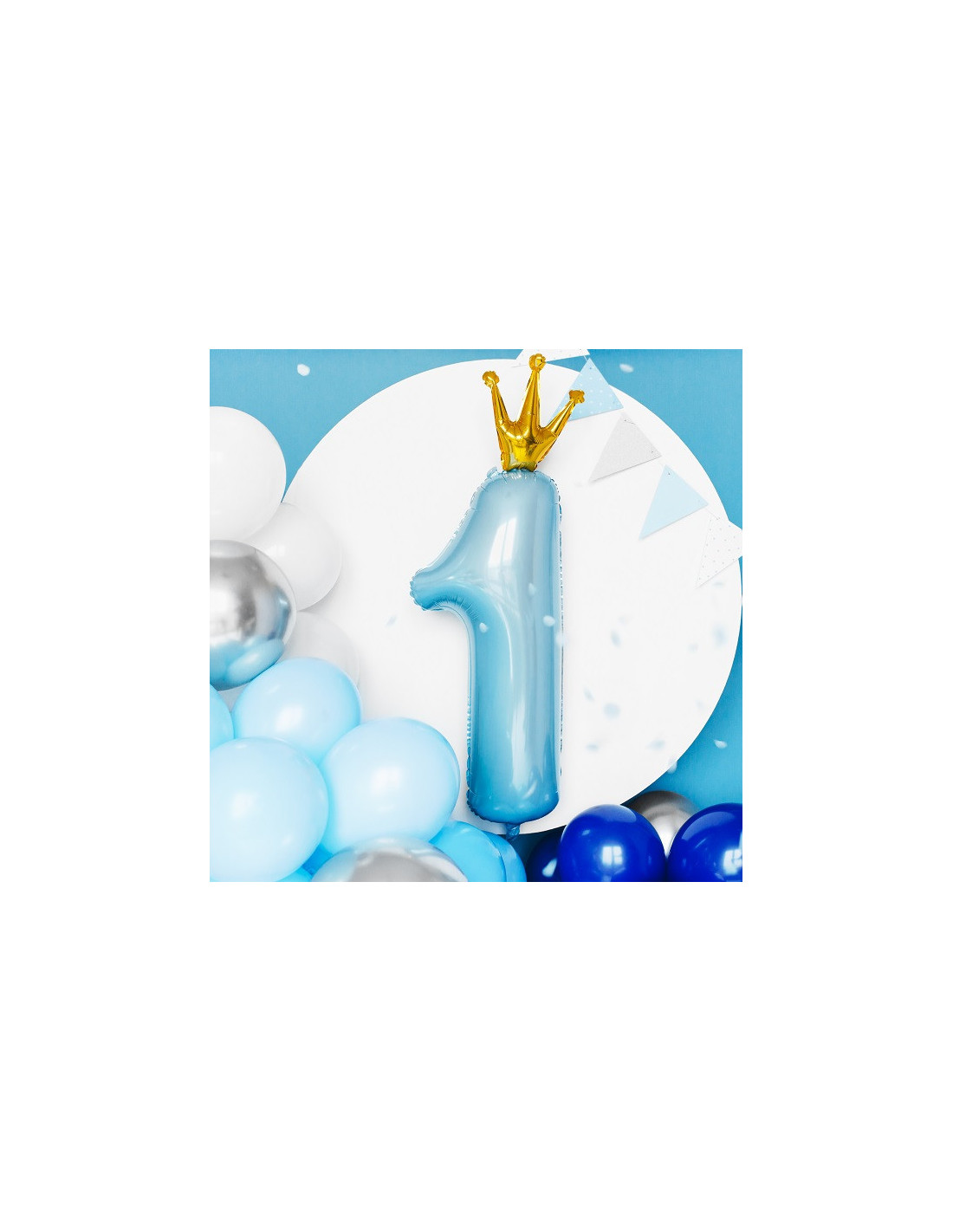 Ce ballon en forme de chiffre "1" bleu et or, sera idéal pour le 1er anniversaire d'un petit garçon. Chic et moderne, ce ballon en aluminium bleu accompagné d'une petite couronne au top apportera la touche finale à votre décoration lors de la fête d'anniversaire.