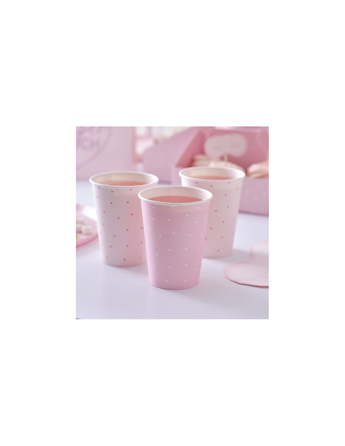 4 x gobelets rose pâle à pois rose, mesurant 11 cm (H) x 22,8 cm (L)