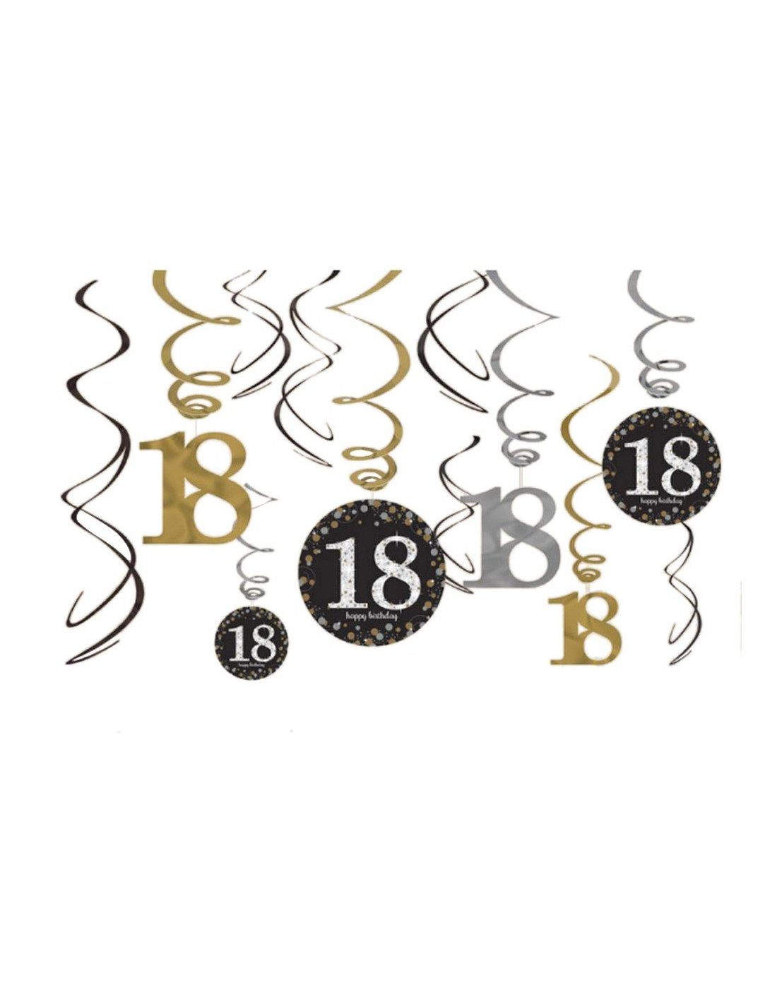 Célébrez vos 18 ans avec l’aide de ces décorations « Joyeux Anniversaire » pour une célébration glamour. En noir, argent et or, ces jolis tourbillons suspendus ajouteront un éclat à vos anniversaires. Accrochez ces décorations au plafond pour préparer le décor d'une fête parfaite.