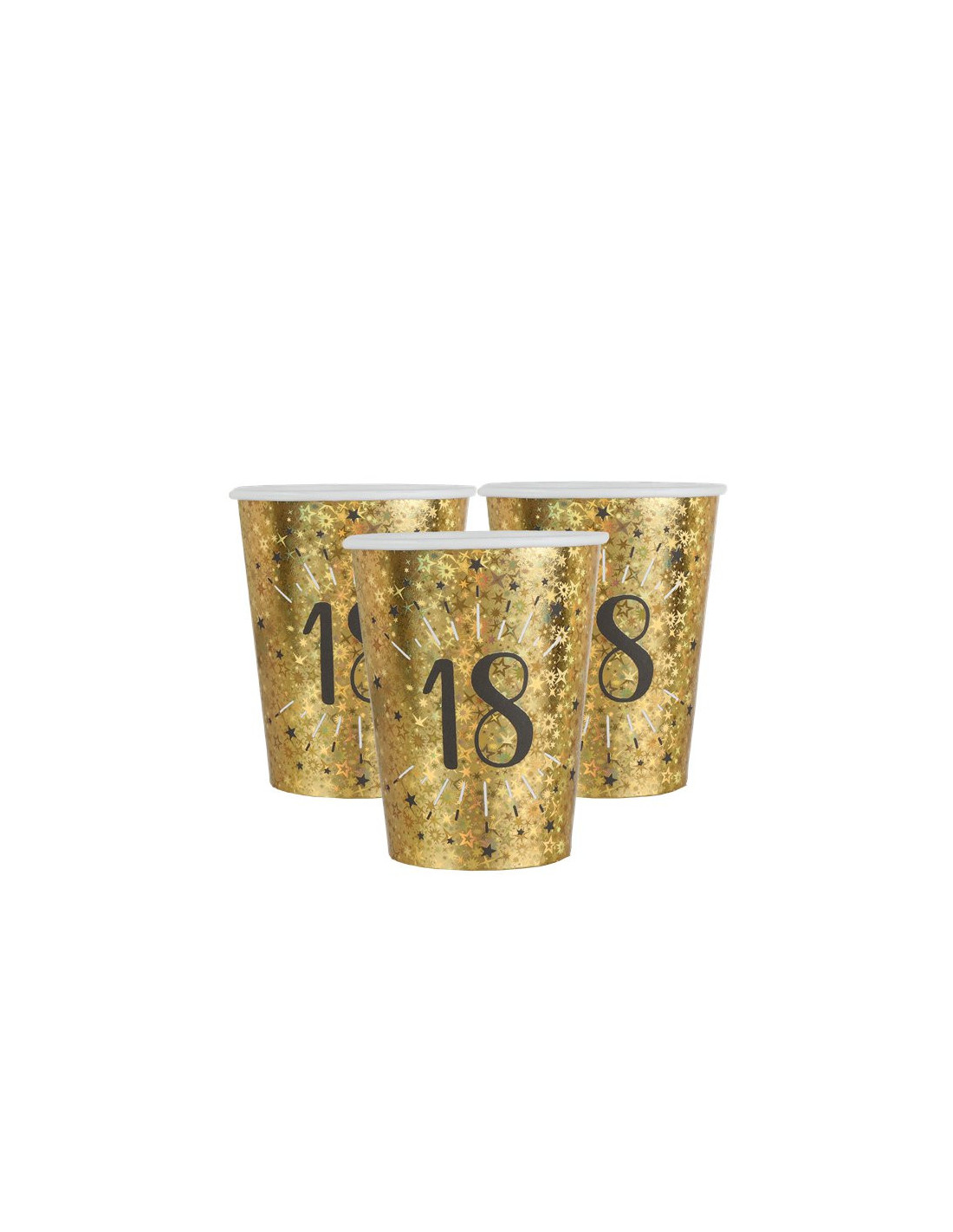 Décorez votre table d’anniversaire avec cette gamme chic or et noir. Les gobelets arborent le chiffre « 18 », des serpentins et des étoiles noires pour célébrer vos 18 ans.