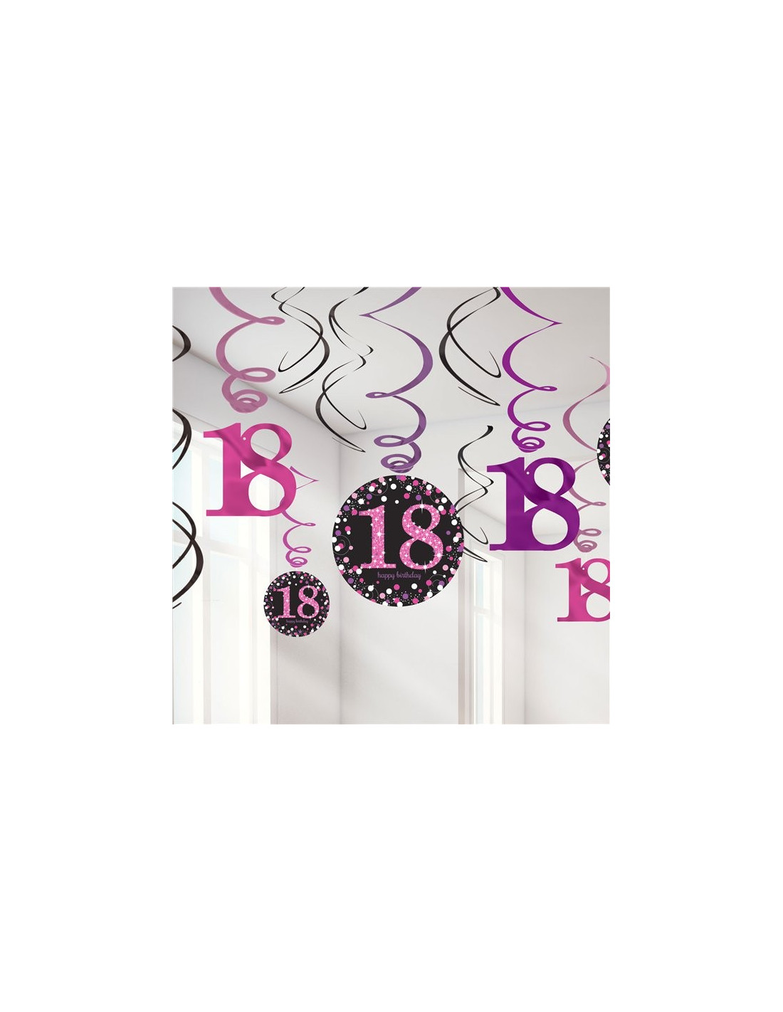 12 Décorations d'anniversaire 18 ans rose à suspendre " Happy Birthday "