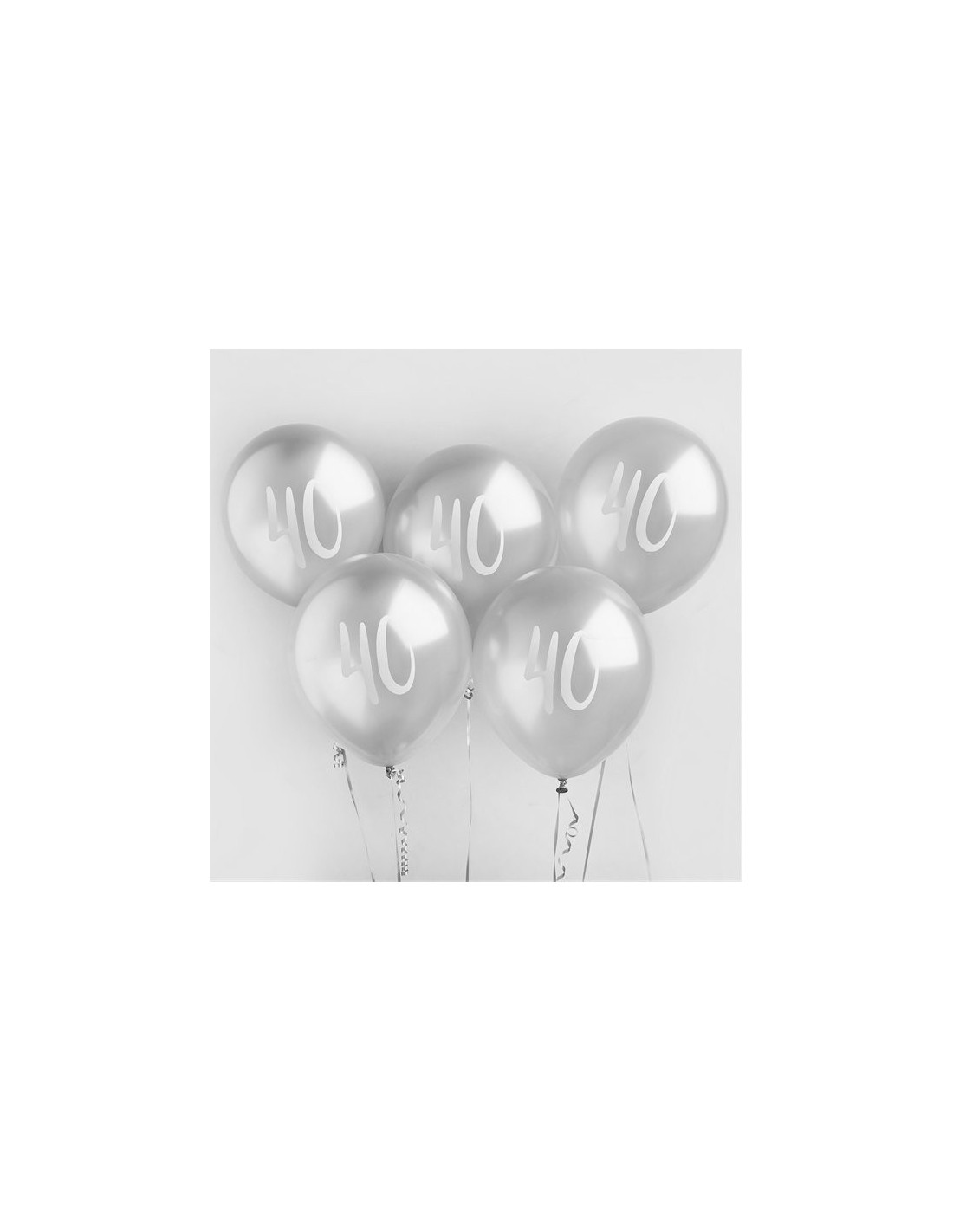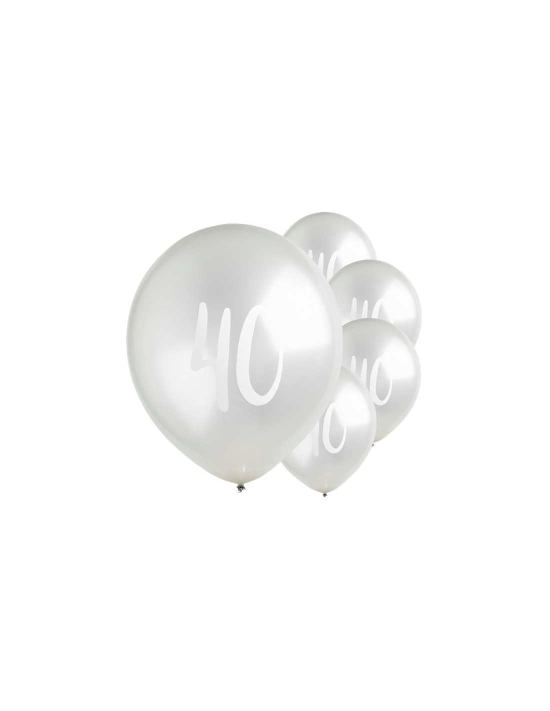 Choisissez ces magnifiques ballons argentés en latex pour votre fête à thème 40 ans. Ils vont sans doute donner du charme et du style à votre 40 ème anniversaire. Chaque ballon à imprimé le chiffre "40" en blanc.