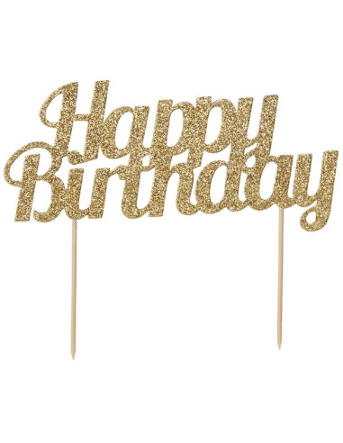 Ajoutez la cerise sur le gâteau avec cette décoration en papier à paillettes dorées pour une touche finale parfaite à votre anniversaire. Elle contient la mention "Joyeux Anniversaire" et convient pour tous les gâteaux d'anniversaire.