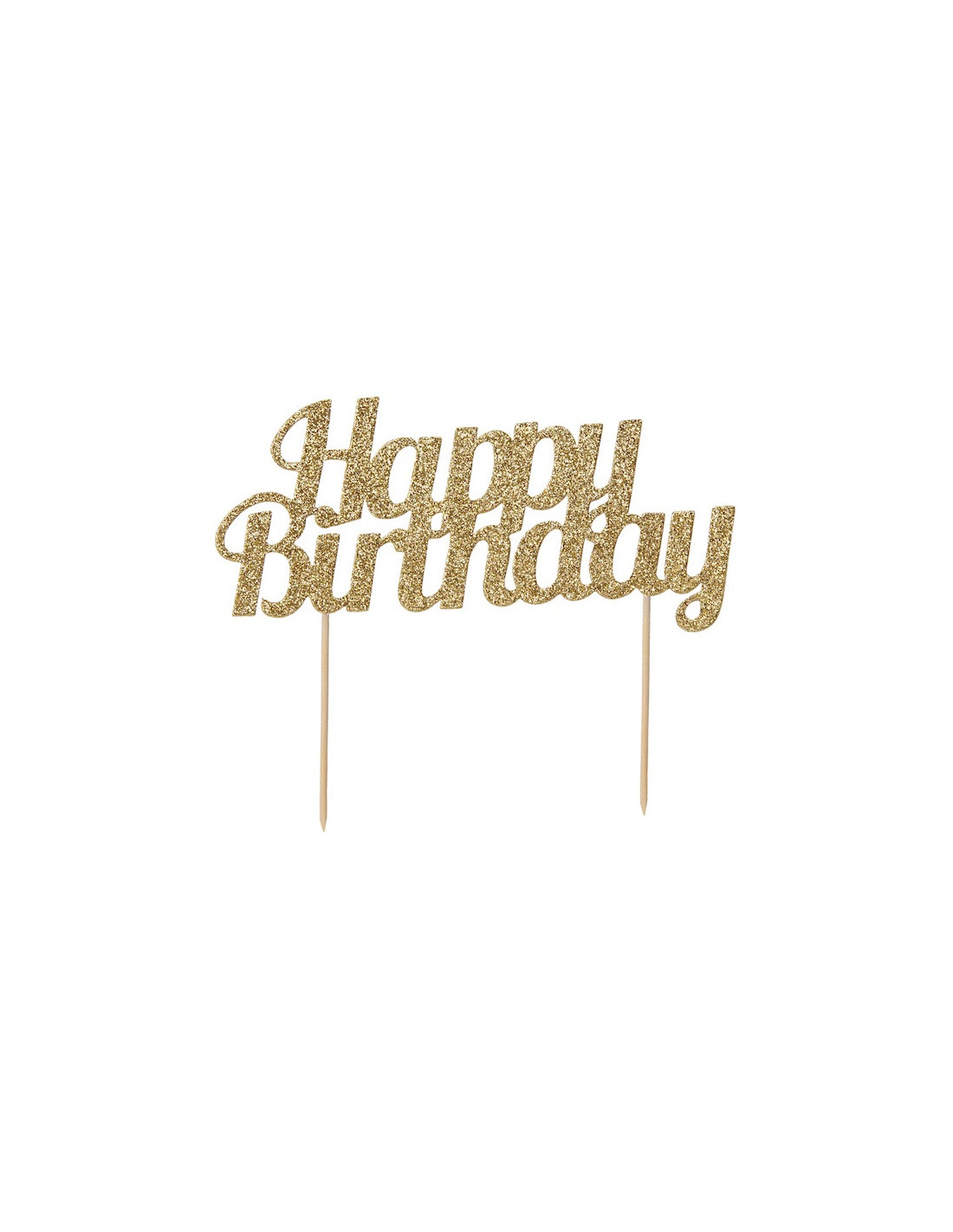 Ajoutez la cerise sur le gâteau avec cette décoration en papier à paillettes dorées pour une touche finale parfaite à votre anniversaire. Elle contient l'inscription "Joyeux Anniversaire" et convient pour tous les gâteaux d'anniversaire.