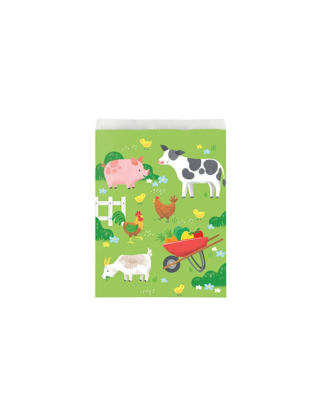 Offrez une touche ludique à votre fête avec ces sachets à cadeaux Animaux de la ferme, parfaits pour gâter les petits invités. Illustrés d’une jolie scène de ferme, ils mettent en avant un cochon, une vache, un coq, une poule, une chèvre, des poussins ainsi qu’une brouette remplie de légumes, pour un univers à la fois amusant et coloré. De taille idéale, ces sachets sont parfaits pour contenir bonbons, petits jouets ou surprises, et feront un souvenir apprécié après la fête.
