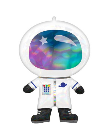 Un joli ballon en aluminium en forme d'astronaute dans une tenue blanche et multicolore! Avec une petite planète dessinée et les boutons de la fusée, ce ballon plongera parfaitement la décoration en immersion dans l'espace !