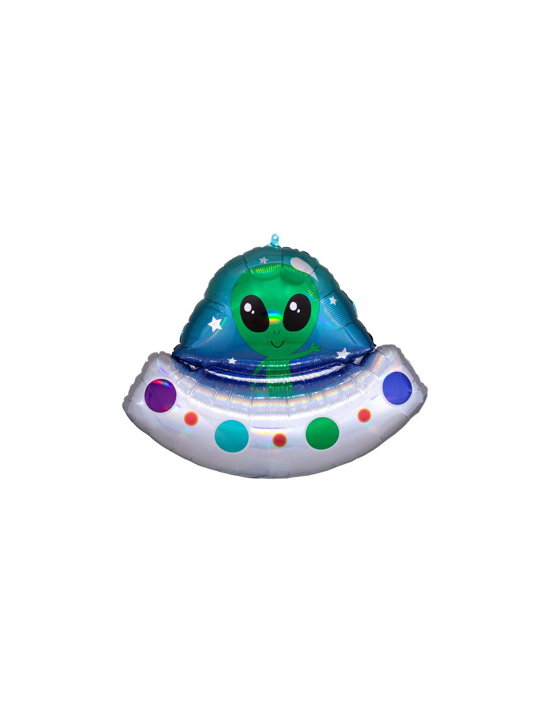 Apportez une touche galactique et amusante à votre décoration avec ce ballon Ovni Alien ! Idéal pour une fête d’anniversaire sur le thème de l’espace, ce ballon coloré en forme de soucoupe volante fera briller les yeux des petits explorateurs.