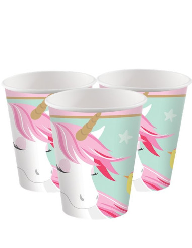 Paquet de 8 gobelets de fête Licorne en carton ECO de 250 ml