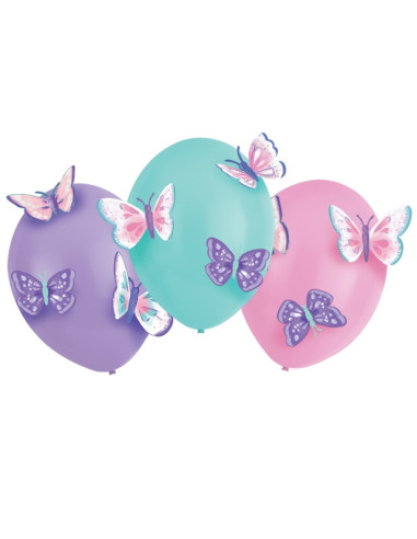 Paquet de 3 ballons en latex de 27 cm et plusieurs papillons en papier