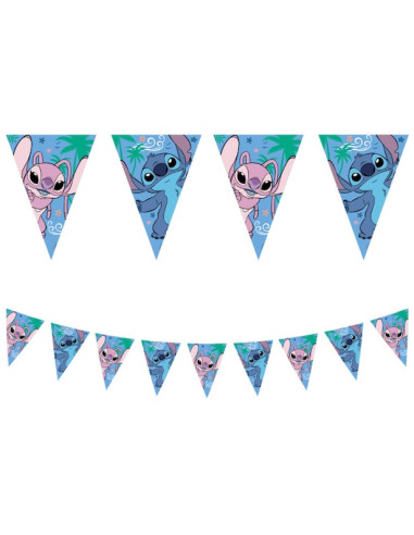 Cette guirlande de fête en papier est ornée de fanions alternant entre les images de Stitch™ et de sa célèbre amie Angel, apportant une touche amusante et colorée à votre décoration.