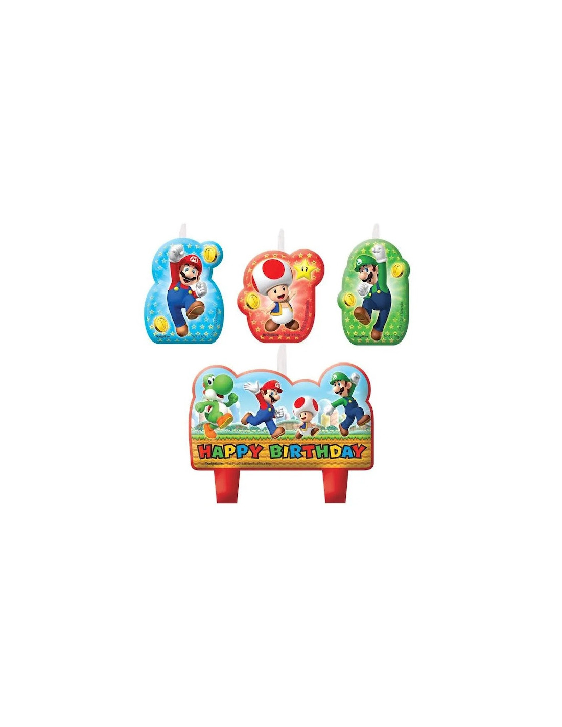 Vous vous apprêtez à fêter son anniversaire sur le thème Mario et vous manquez d’inspiration pour décorer son gâteau d’anniversaire ? Ces paquet de 4 bougies comporte une bougie Mario, une bougie Luigi, une bougie Todd ainsi qu’une bougie plus large qui reprend nos 3 personnages accompagné de Yoshi sur laquelle figure “Happy Birthday” aux couleurs de Mario Bross.