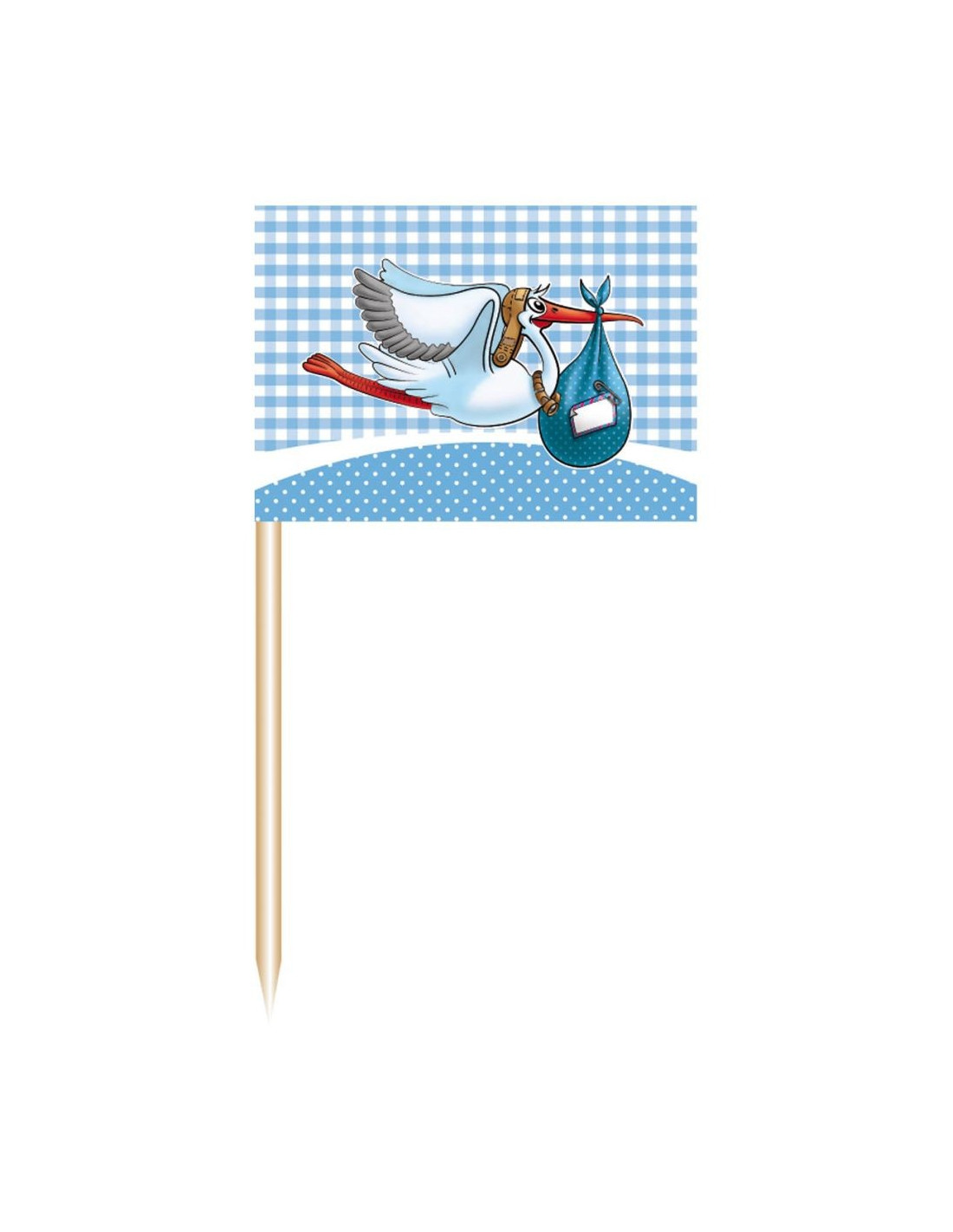 Ces décorations à gâteaux disposent tous d'un pique en bois ainsi que d'un motif en papier, sur lequel vous retrouverez une image de cigogne, semblant porter une bonne nouvelle.