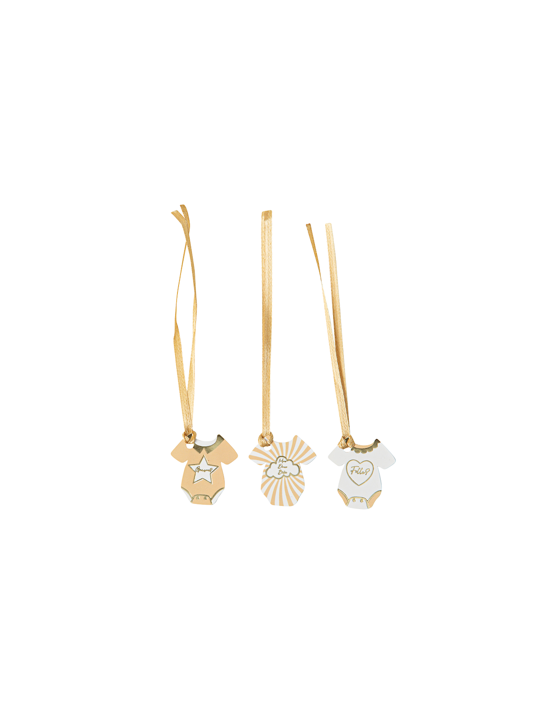 Ces étiquettes seront parfaites autant en guise de marque-place que pour décorer un contenant à dragées et noter le prénom du bébé. Elles conviendront à l'occasion d'une Baby Shower gender reveal. Elles représentent un body de bébé avec des inscriptions " Garçon ? ", " Fille ? ", " Mon doux bébé " et elles sont imprimées sur un papier cartonné dans des teintes de camel, blanc et or. Un ruban de satin doré vous permettra de les accrocher avec facilité.