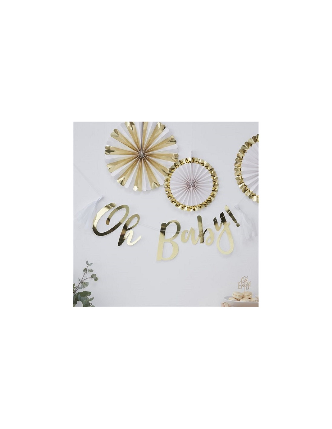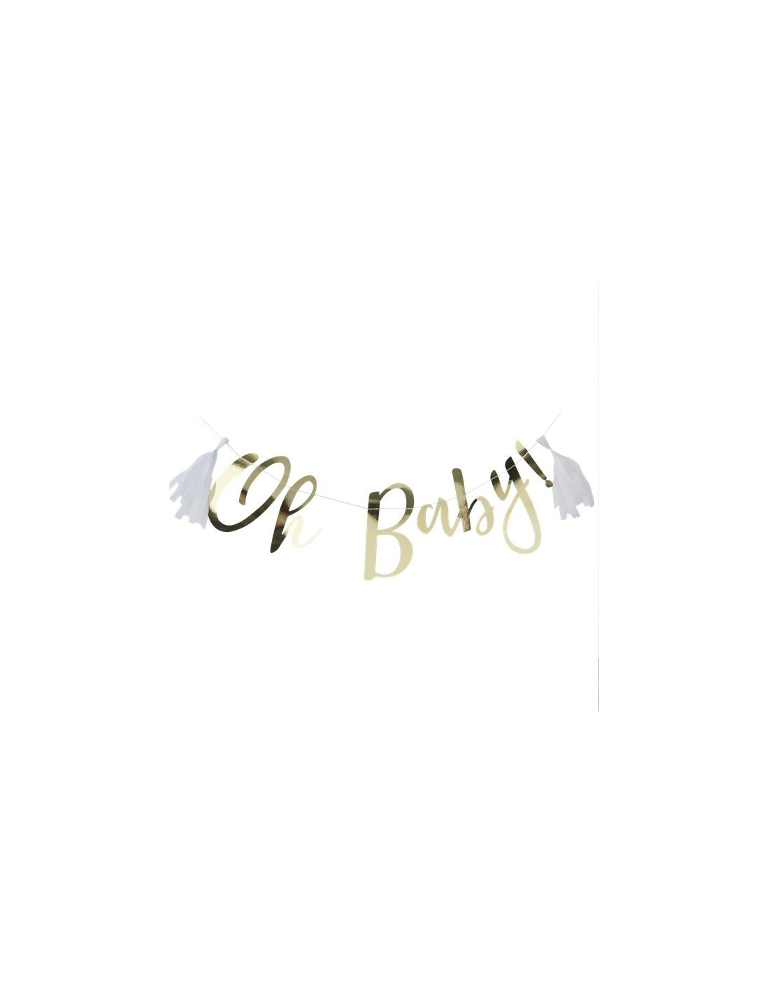 Guirlande de fête en Or « Oh Baby » avec pompons - Baby Shower