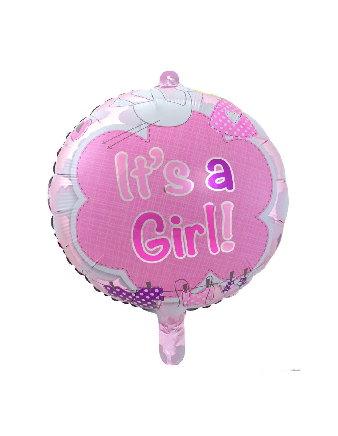 Ballon "It's a girl" rose pour Baby Shower, une Fête de Naissance ou une Fête Prénatale. Ballon en aluminium pouvant être gonflé avec ou sans hélium à l'aide d'une paille.