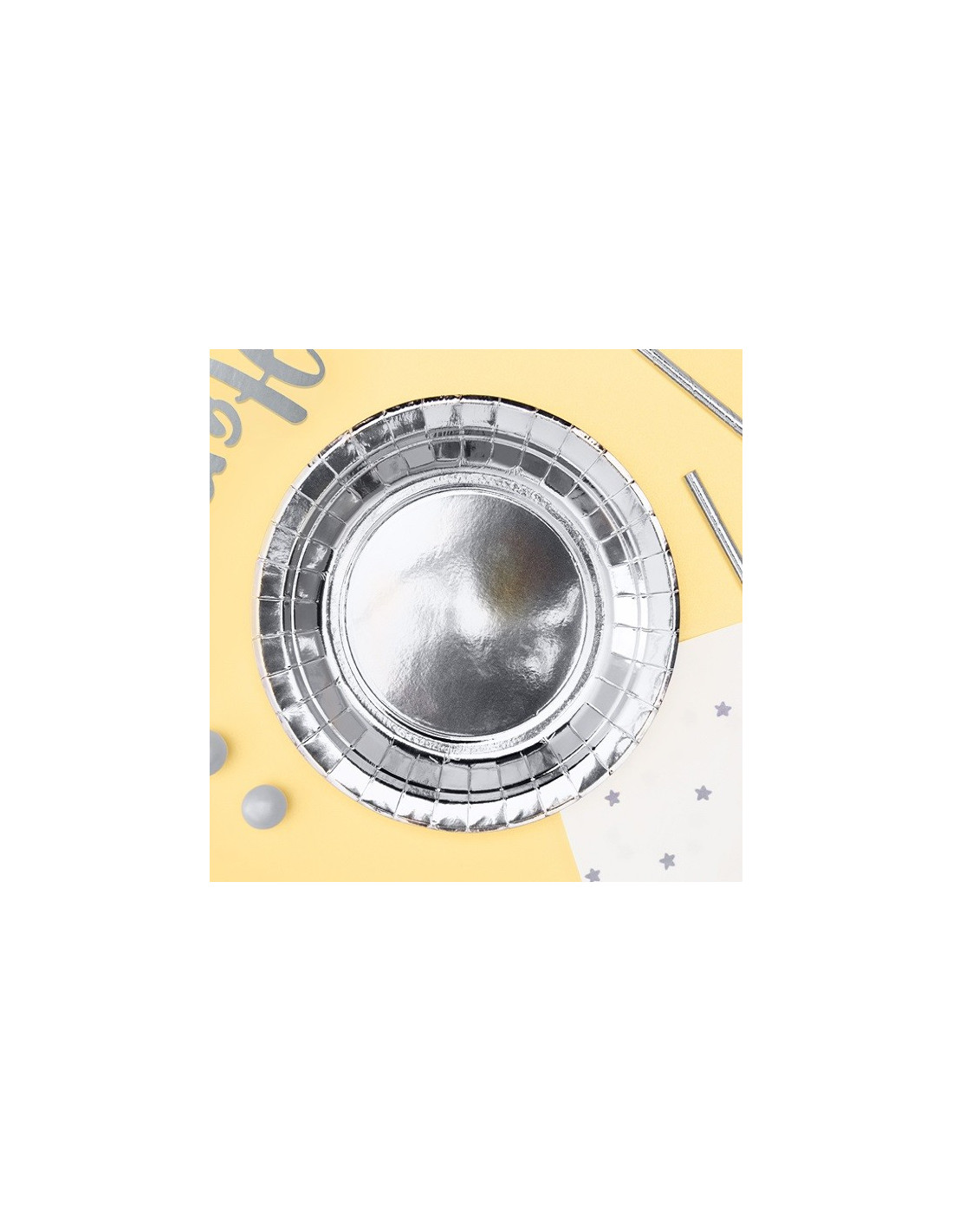 6 Assiettes de fête en papier métallique argenté - Déco de table