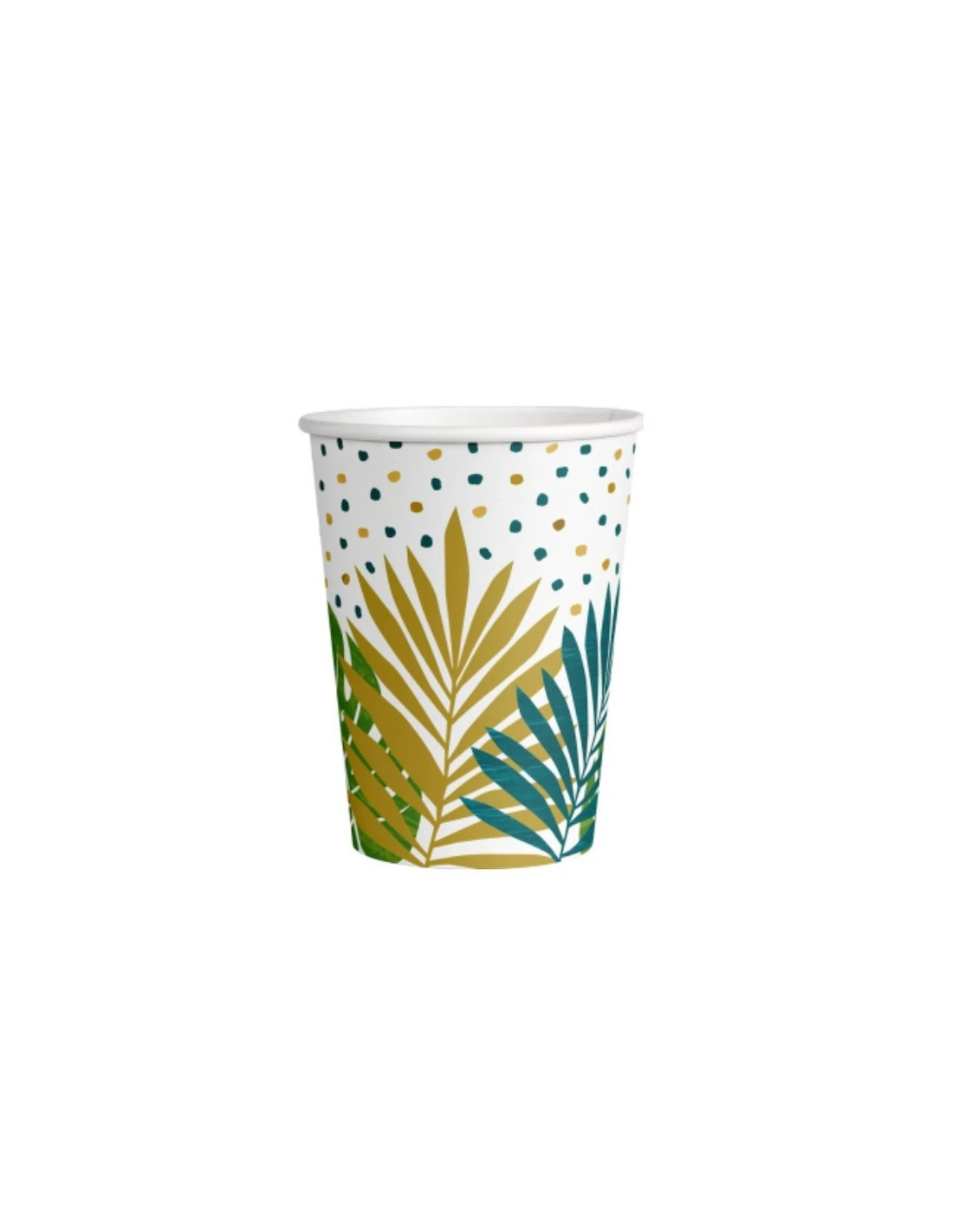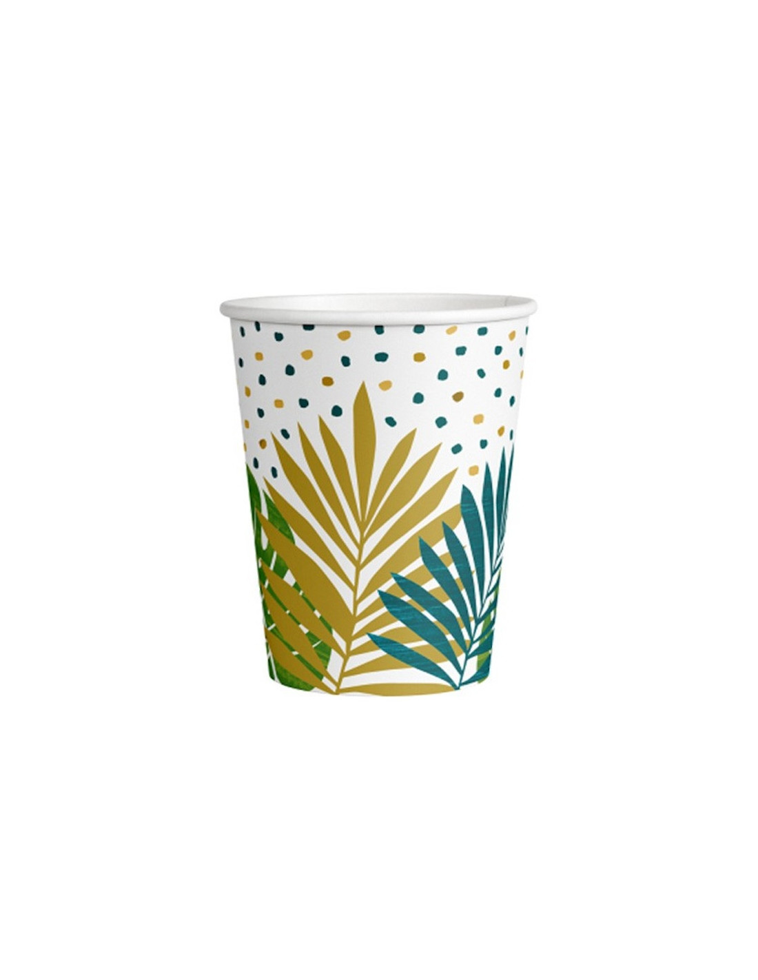 Ces magnifiques gobelets de fête seront parfaits pour dresser une table sur le thème Tropical ou sur le thème de la Jungle. Ils sont imprimés de feuilles tropicales vertes et dorées.
