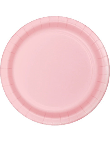 Ce paquet comprend 8 assiettes à dessert Rose Clair de 18 cm en carton