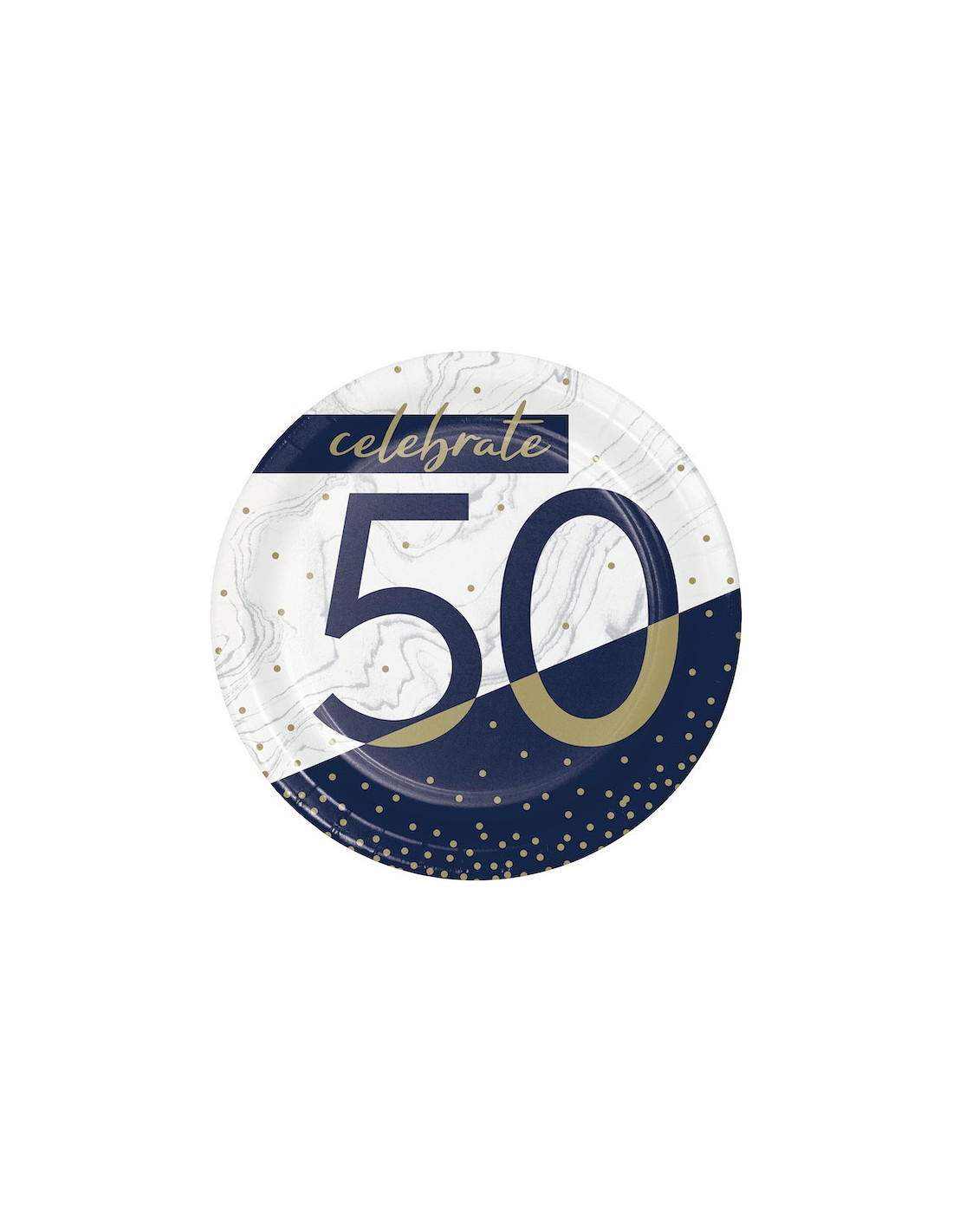 Aggiungete un tocco di eleganza alla vostra festa con questi piatti blu navy e oro per il 50° compleanno, perfetti per celebrare un compleanno memorabile e raffinato.