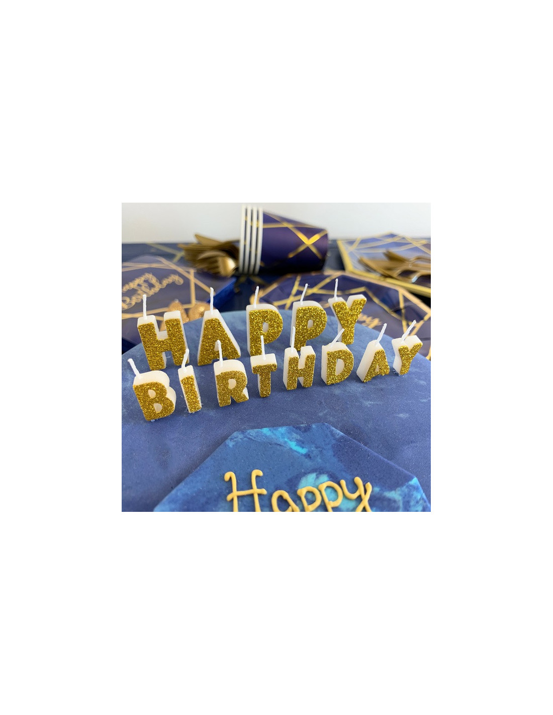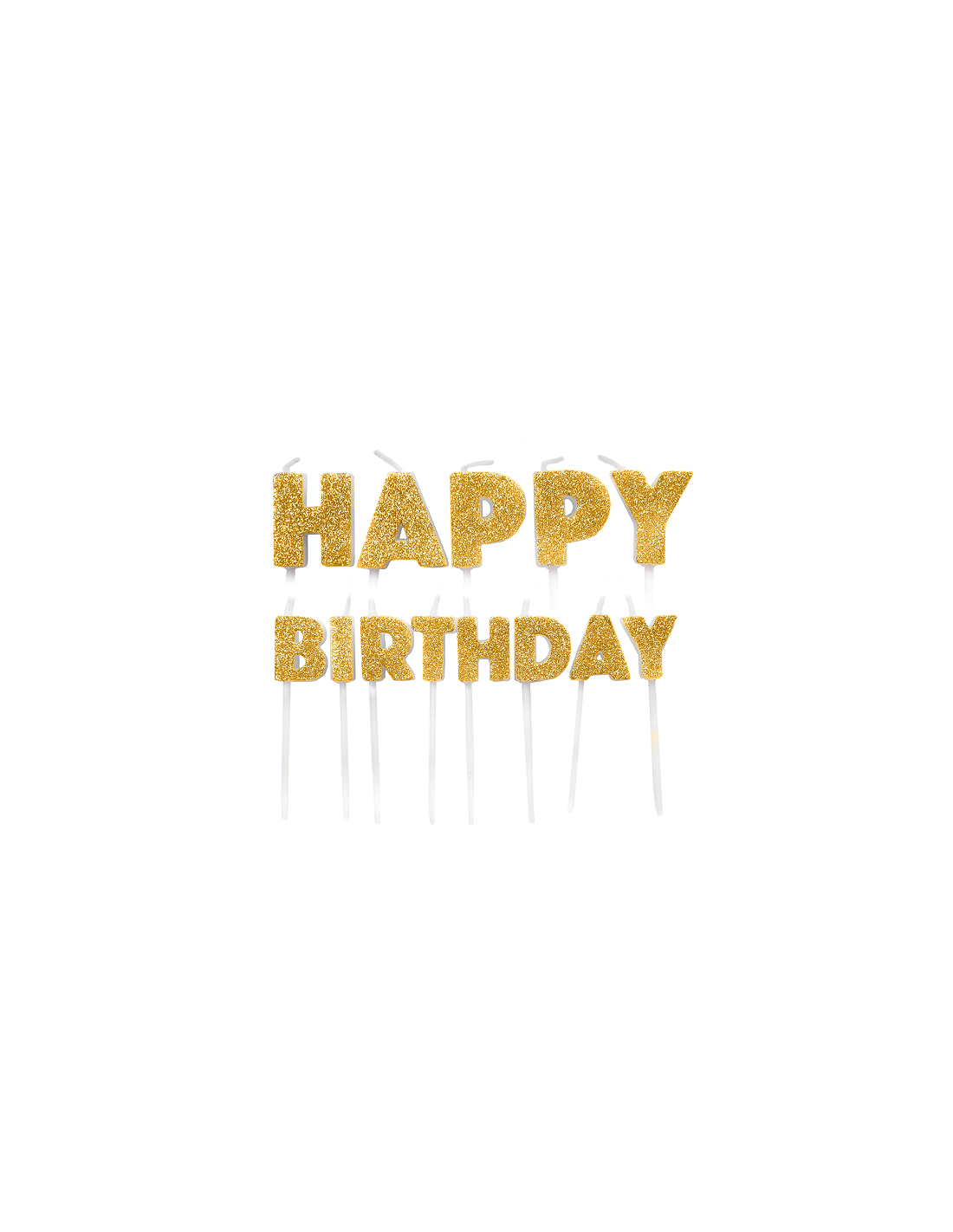 Candeline perfette per decorare la tua torta di compleanno! Questo set di 13 candeline dorate glitterate con la scritta "Happy Birthday" aggiungerà un tocco di eleganza alle decorazioni della tua tavola.